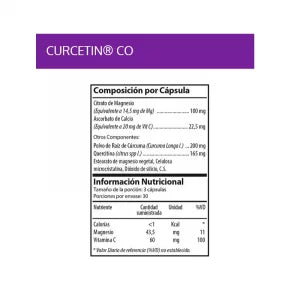 CURCETIN®Fórmula con Magnesio, Vitamina C, Cúrcuma longa y Quercetina. Curcetin® es una fórmula con Magnesio, Vitamina C adicionado de Cúrcuma longa y Quercitina, todos en formas altamente biodisponibles y tienen un rol clave en la funcionalidad del producto. Su propósito es adicionarse a la dieta normal generando efectos fisiológicos y nutricionales.