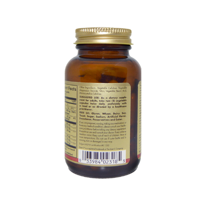 Dos cápsulas de Quercetina Complex con Ester-C® Plus proporcionan 500 mg de quercetina y 500 mg de vitamina C patentada, no ácida, que minimiza las molestias gastrointestinales. Además, contienen bromelina (una enzima proteolítica) junto con rutina, escaramujo y acerola.