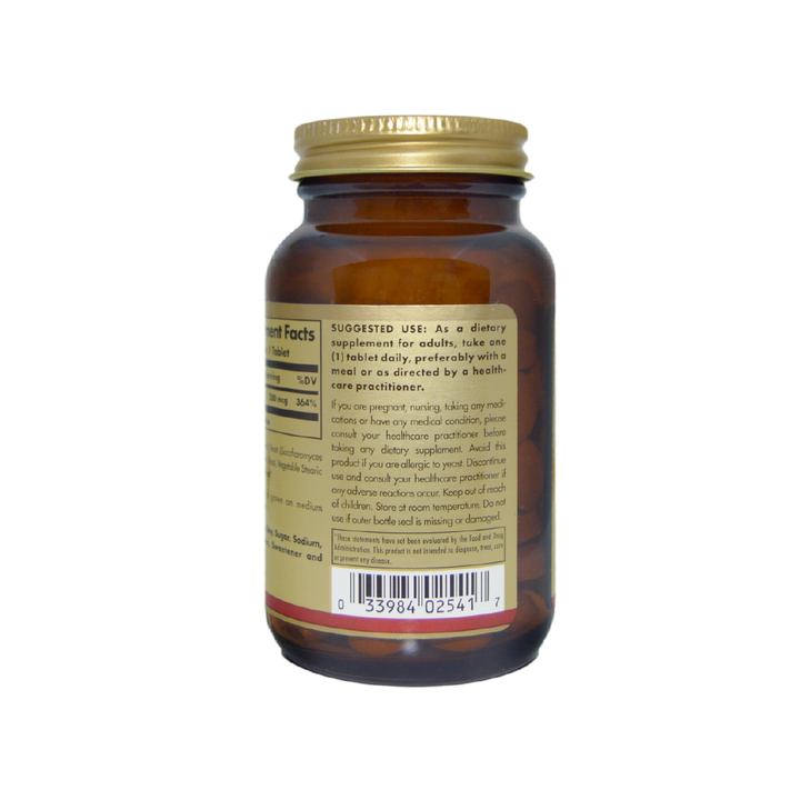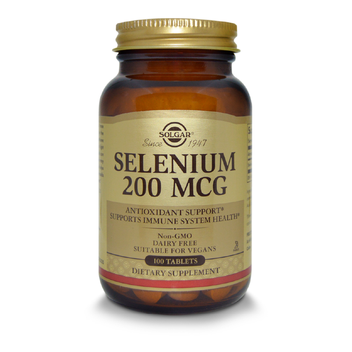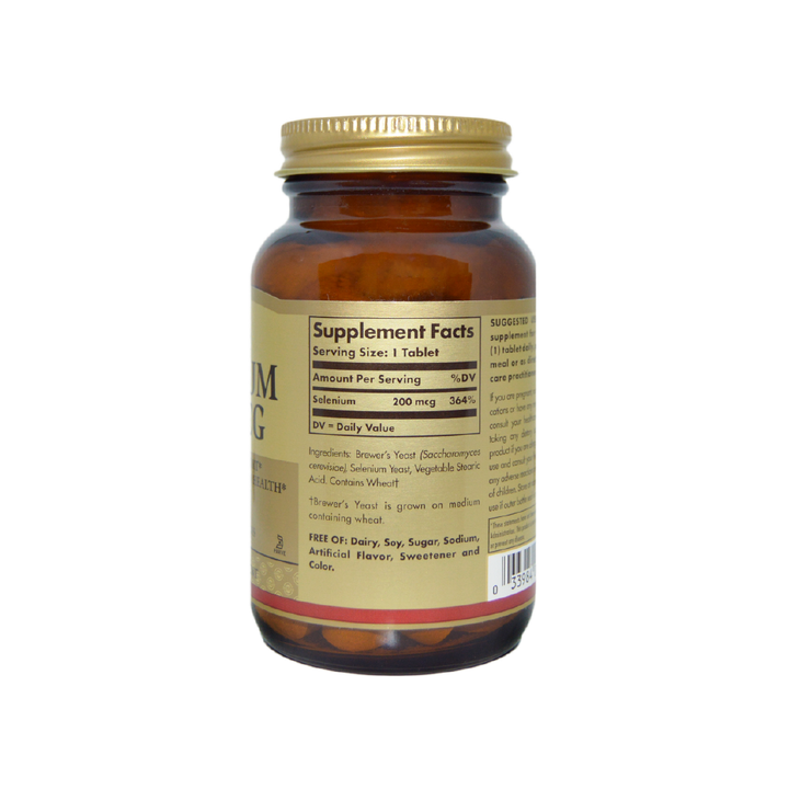 Selenio 200 µg de Solgar® aporta 200 µg de selenio elemental por comprimido en forma de seleniometionina, sin levadura. -